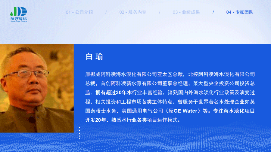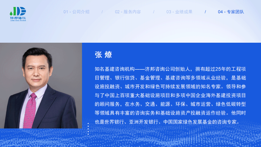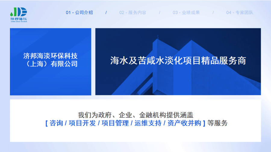 企業(yè)簡介 組織架構(gòu) 子公司 - 濟(jì)邦國際有限公司 子公司 - 濟(jì)邦海淡環(huán)??萍?上海)有限公司 里程碑事件 分支網(wǎng)絡(luò) 服務(wù)行業(yè) 專業(yè)團(tuán)隊(duì) 九大業(yè)務(wù)領(lǐng)域 項(xiàng)目業(yè)績 出版叢書 行業(yè)影響